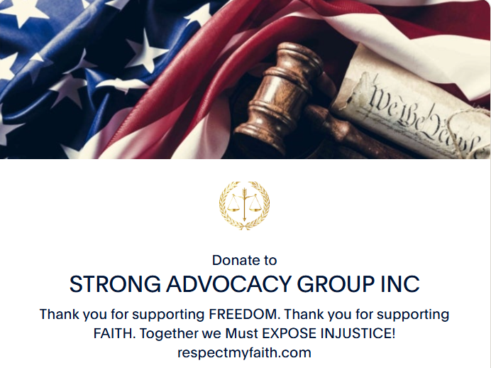 STRONG Advocacy Group is a nonprofit that exists to support people of faith who have had their religious rights violated. We stand to expose these injustices down to the cruel realities of how through dubious and cut throat means angry disgruntled mobs influence government cooperation to destroy peoples lives without any credible evidence of wrongdoing.